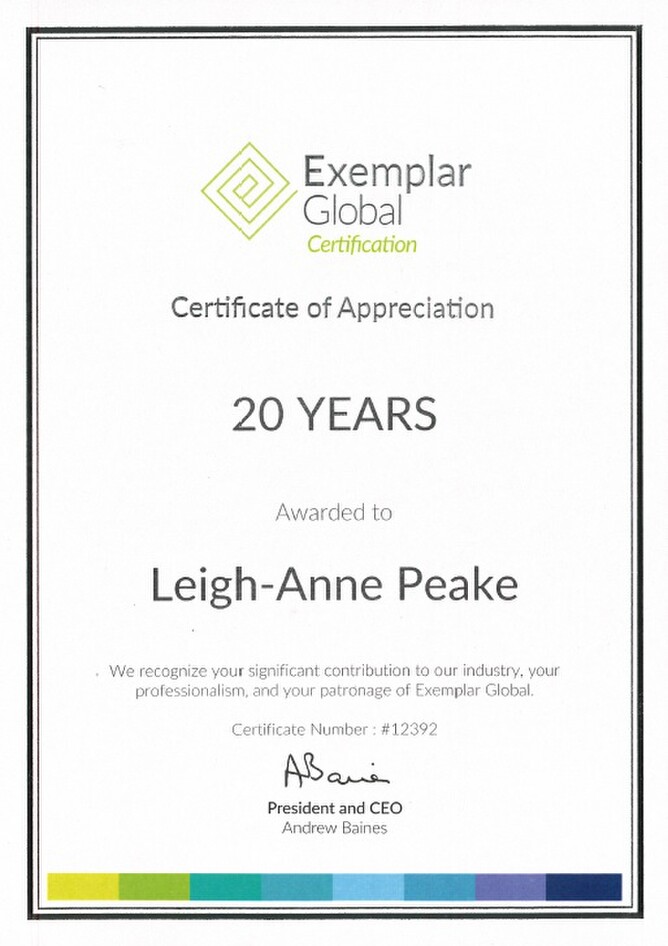 Our Managing Director Leigh-Anne Peake has been an internationally accredited Senior Environmental (and safety and quality) Auditor with EXEMPLAR Global for an impressive 20 YEARS! This means she has completed 20 years of compulsory professional development, conducted audits, undergone peer review, re-registrations, and supported EXEMPLAR with auditor exam development for 20 consecutive years.